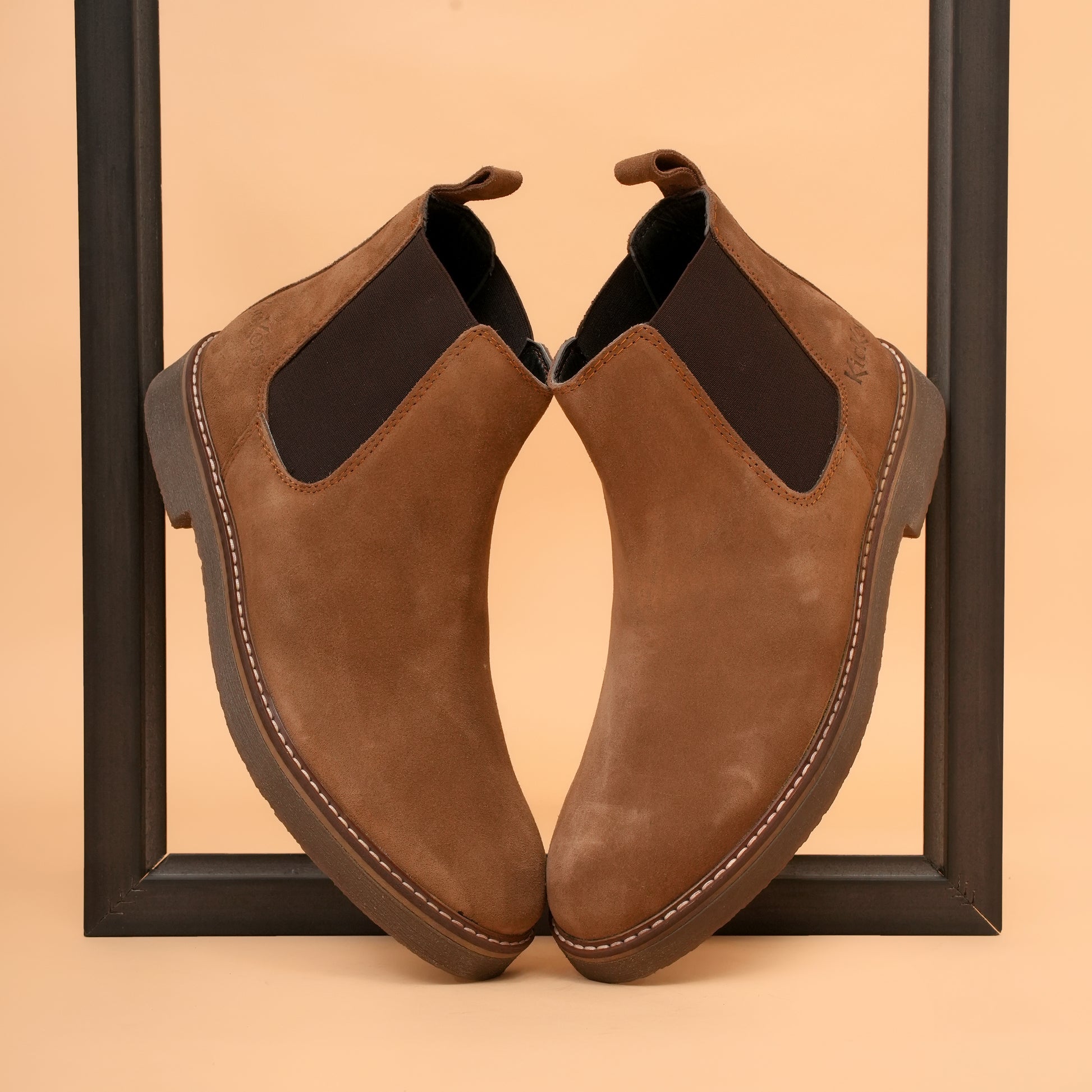 kickors Brown - Men's Chelsea Boots with Genuine Suede Leather Upper